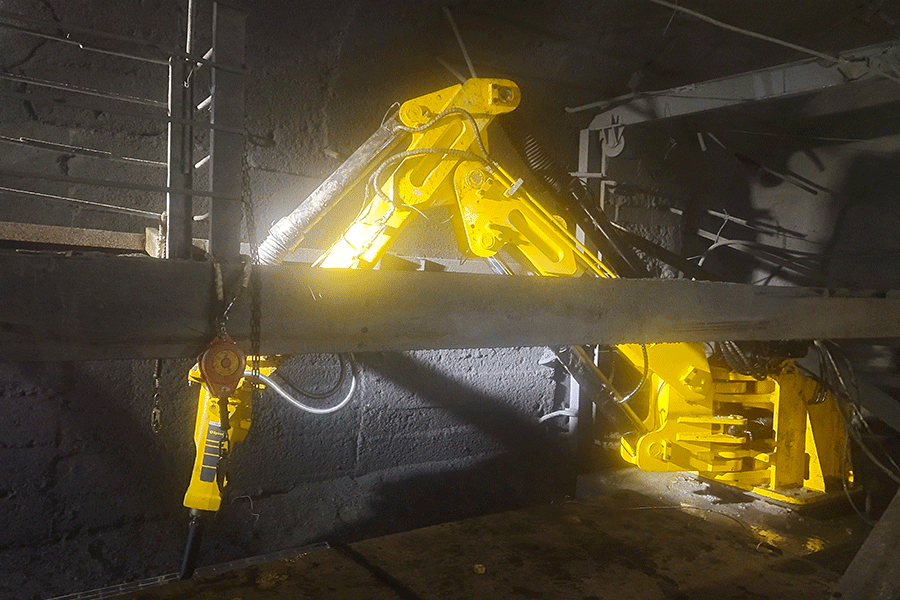 2.井下礦山行業(yè)應(yīng)用:各類(lèi)地下礦山溜井、料倉(cāng)口格柵處阻塞二次破碎處理;