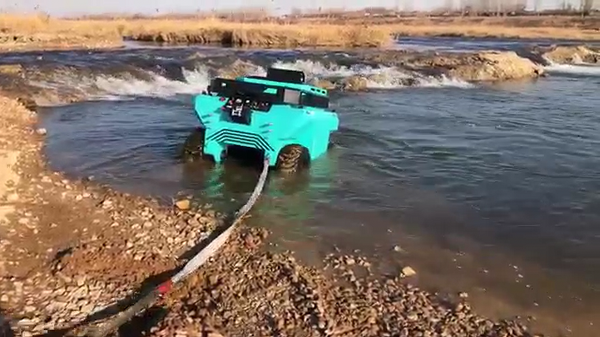 該機器人設(shè)計為水陸兩棲使用,不僅可以在地面上獨立行駛,還可以在水面上漂浮工作,涉水深度不受限制。這種獨特的設(shè)計使得排澇機器人能夠應(yīng)對更加復(fù)雜多變的環(huán)境條件,即便是在洪水淹沒的區(qū)域,也能夠發(fā)揮其排澇作用。