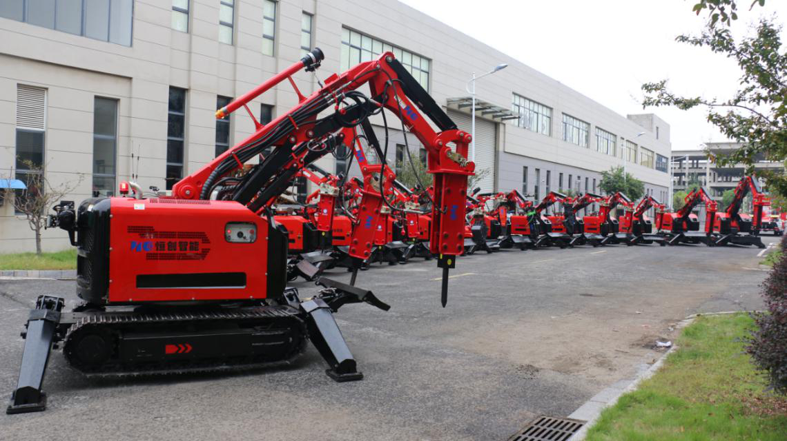 為響應(yīng)國家提升應(yīng)急能力號(hào)召,提供專業(yè)高效的破拆機(jī)器人,根據(jù)應(yīng)急消防部門不同作業(yè)需求,恒創(chuàng)智能研發(fā)制造了 RXR120、RXR200、RXR330和RXR500型四款系列化破拆機(jī)器人。柴油機(jī)功率范圍在 18.5kw - 61.4kw,最大工作范圍達(dá) 7.5 米,能夠?qū)崿F(xiàn)1公里外遠(yuǎn)程視頻操控及狀態(tài)參數(shù)可觀可控,同時(shí)研發(fā)了液壓手腕、機(jī)械快換,自動(dòng)導(dǎo)通模塊,液壓錘、剪擴(kuò)一體器、全方位切割鋸、蛤殼斗、液壓剪等多種功能屬具,可滿足在高溫、高粉塵、易坍塌的危險(xiǎn)區(qū)域中靈活地進(jìn)行全方位遙控的破碎、剪切、切割、抓取、搬運(yùn)等多功能作業(yè)。近日4款全系列破拆機(jī)器人陸續(xù)下線,集中交付給各地應(yīng)急消防部門。